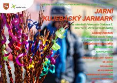 V sobotu 12. 4. 2014 se od 9.00 hodin uskuteční na náměstí Přemysla Otakara II. JARNÍ KUJEBÁCKÝ JARMARK, kde budou k vidění ukázky řemesel, nabídka zboží nejen s velikonoční tematikou, k ochutnání budou zabijačkové speciality a moravská vína. V kulturním programu vystoupí přípravné soubory DPS Rubínek, MŠ Lidická, MŠ Kamarádi, MŠ Pod Smrkem, Akordeonový soubor ZUŠ a Kytarový soubor ZUŠ.
